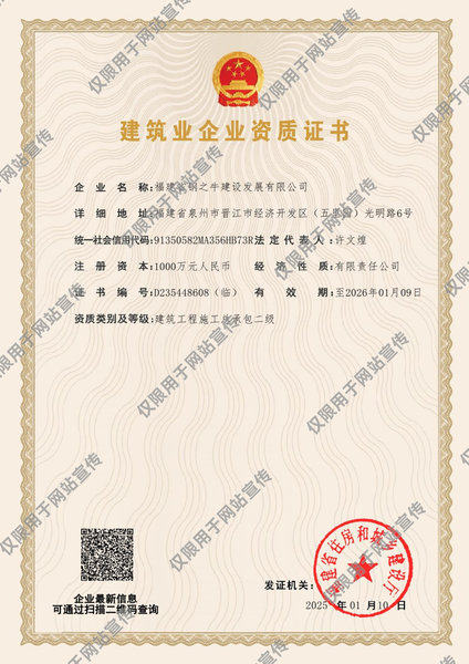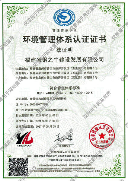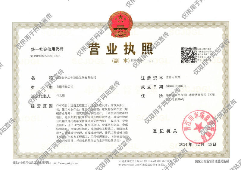 福建省钢之牛建设发展有限公司以诚信经营、科学管理、优质服务,开拓进取为发展理念,以多元发展、制造精品,实现企业不断进步。展望未来,钢之牛人志存高远,要用最前沿的建筑思想和更规范的管理模式,做到组织科学化,决策民主化,行事程序化,为社会做出更多更有特点的优秀产品。